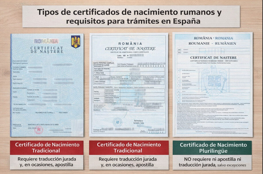 Si no es un certificado plurilingüe, el certificado de nacimiento rumano para la nacionalidad española debe presentarse acompañado de traducción jurada.