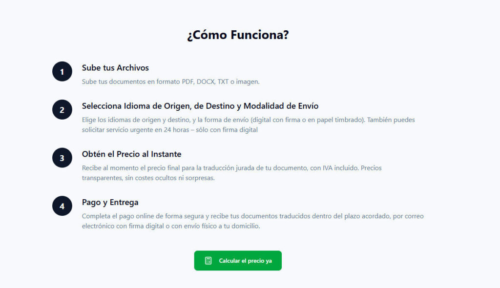 După obținerea cazierului judiciar în Spania, poți încărca direct documentul în platformă pentru traducerea autorizată a certificatului de cazier judiciar în Spania și primești oferta instant.